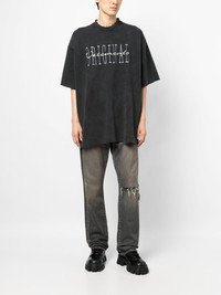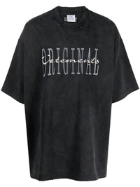 Original logo-print T-shirt Paris-based label VETEMENTS presents a street-style aesthetic with this T-shirt, thanks to an oversize silhouette and statement logo print. Highlights - Charcoal grey - Cotton - Faded effect - Logo print to the front - Round neck - Drop shoulder - Short sleeves - Straight hem Imported Composition Cotton 100% SIZE & FIT Model measurements Height 6 ft 2 in(1.87 m) Bust/Chest 34.25 in(87 cm) Hips 36.22 in(92 cm) Waist 29.52 in(75 cm) FittingInformation Designed for an oversized fit, offering additional room throughout Made from a midweight non-stretch fabric This piece fits true to size – if you would prefer a closer fit, take one size down Washing instructions Machine Wash
