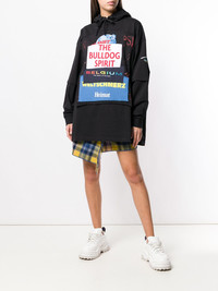 oversized Bulldog hoodie Demna Gvasalia delivers collections that are quirky, avant-garde and eccentric. Vetements Autumn/Winter 2018 Collection is no exception. This black oversized Bulldog hoodie is crafted from cotton and features a hood with drawstring tie fastenings, dropped shoulders, long sleeves, an asymmetric style, applique detailing and a longeline design. Imported Composition Cotton 100% SIZE & FIT Model measurements Height 5 ft 10 in(1.77 m) Bust/Chest 32.28 in(82 cm) Hips 35.82 in(91 cm) Waist 24.8 in(63 cm) Washing instructions Machine Wash