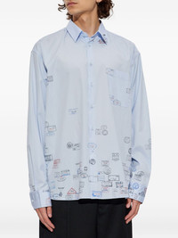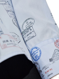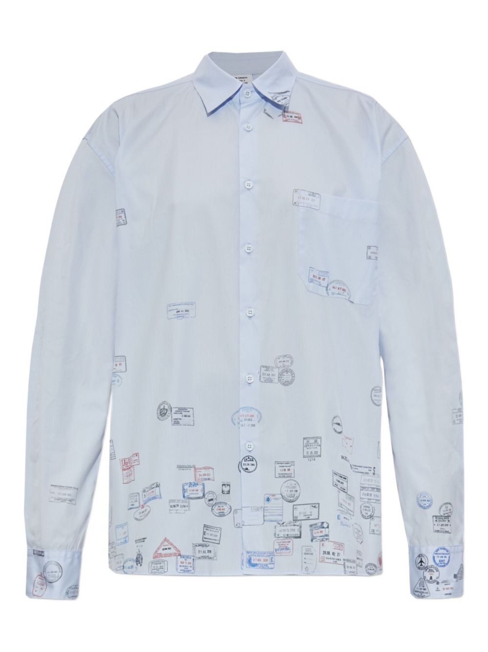 passport-stamp print shirt Highlights - Light blue - Cotton - Long sleeves - Button fastening - Numerous passport stamp prints Made in Italy Composition Cotton 100% Washing instructions Read Manufacturer Guidelines