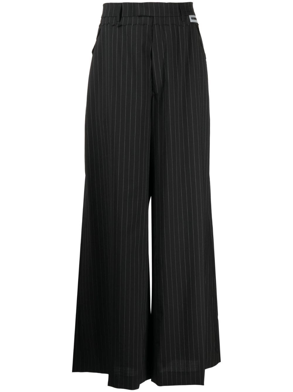 pinstripe wide-leg trousers VETEMENTS spotlights its magnified take on everyday staples with these wool-blend trousers. They’re detailed with contrasting pinstripes and cut to an exaggerated wide-leg silhouette. Highlights - Navy blue - Virgin wool - Pinstripe print - High-rise waist - Concealed front fastening - Belt loops - Scalloped trims - Logo patch to the front - Slip pockets to the sides - Two rear welt pockets - Wide leg Imported Composition Virgin Wool 98%, Elastane 2% SIZE & FIT Model measurements Height 6 ft 2 in(1.87 m) Bust/Chest 36.22 in(92 cm) Hips 37.79 in(96 cm) Waist 28.34 in(72 cm) FittingInformation Designed with a wide leg, offering a loose and roomy fit Made from a midweight stretch fabric, this piece offers elasticity and flexibility when worn This piece fits true to size – take your usual size Washing instructions Dry Clean Only