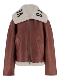 shearling-collar leather jacket