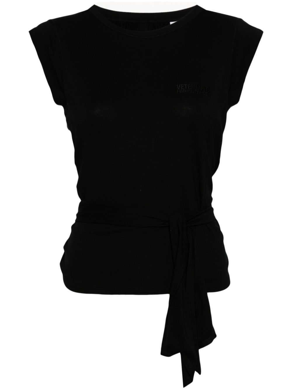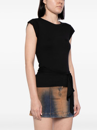 strap-detail cap-sleeves T-shirt Highlights - Jet black - Stretch-design - Cut-out detailing - Strap detailing - Round neck - Cap sleeves Imported Composition Viscose 94%, Elastane 6% SIZE & FIT Model measurements Height 5 ft 9 in(1.76 m) Bust/Chest 29.13 in(74 cm) Hips 33.07 in(84 cm) Waist 22.83 in(58 cm) FittingInformation Designed for a wraparound style that can be adjusted to your preference The adjustable tie waist gives a more adaptable and personalised fit Made from a midweight stretch fabric, this piece offers elasticity and flexibility when worn This piece fits true to size – take your usual size