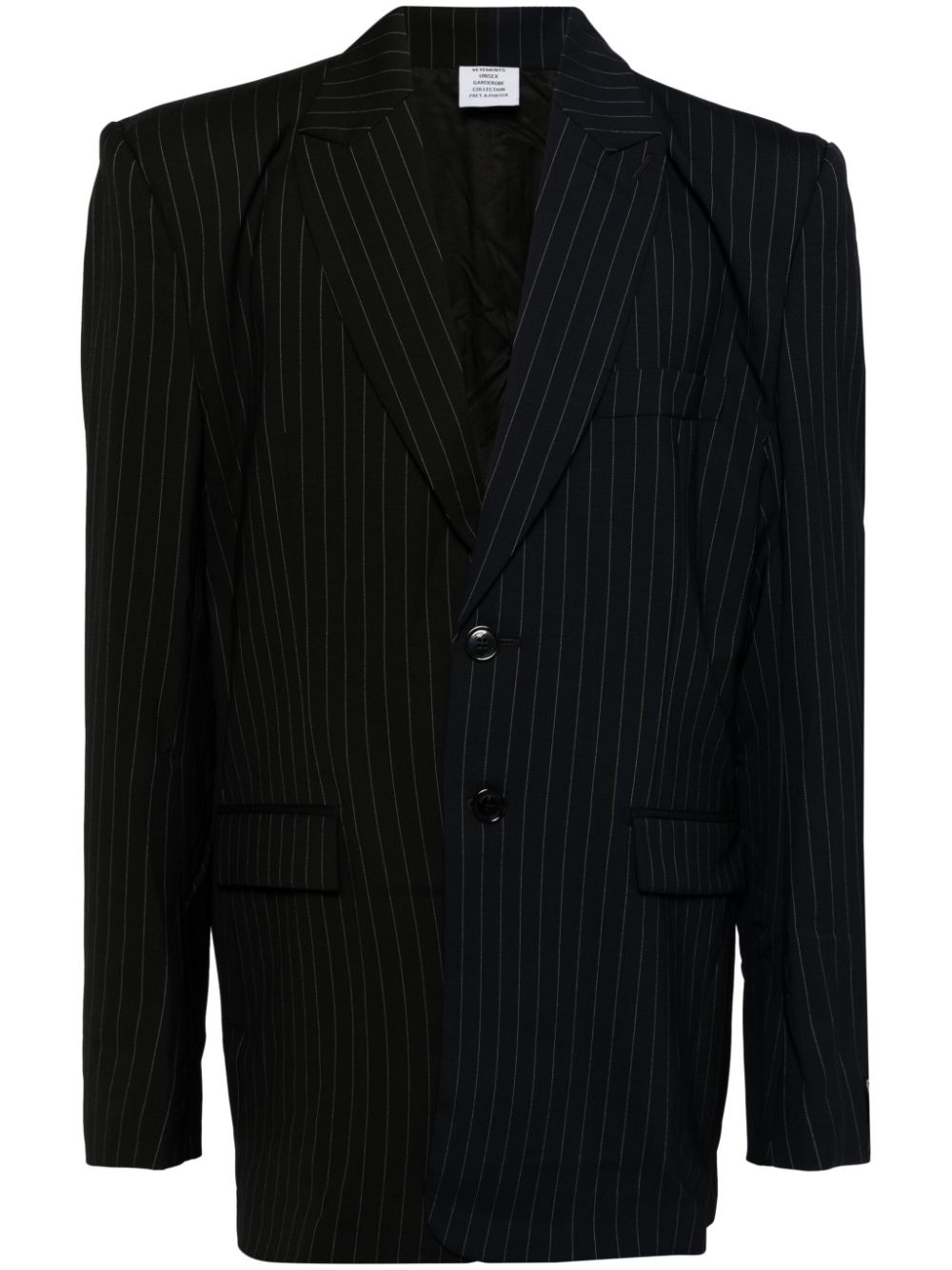 striped blazer Highlights - Blue/white - Virgin wool blend - Vertical stripe pattern - Peak lapels - Front button fastening - Drop shoulder - Shoulder pads - Chest patch pocket - Long sleeves - Buttoned cuffs - Logo patch at the sleeve - Two front flap pockets - American rear vent - Full lining - Internal jetted pockets - When buying this unisex item, keep in mind that it is graded in standard men's sizing. Made in Italy Composition Outer: Virgin Wool 98%, Elastane 2% Lining: Viscose 100%