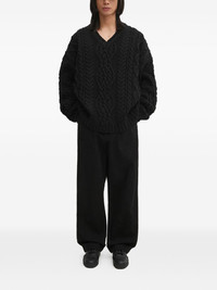 V-neck sweater Highlights - Black - Cable knit - V-neck - Logo patch - Long sleeves Imported Composition Virgin Wool 100% Washing instructions Read Manufacturer Guidelines
