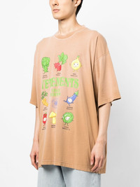 Vegan logo-print cotton T-shirt VETEMENTS displays its enigmatic approach to branding with this cotton tee. In a drop-shoulder silhouette, the style is adorned with cartoon-faced vegetables on the front, alongside a matching logo. Highlights - Light brown - Cotton - Iillustration-style print - Logo print to the front and rear - Crew neck - Drop shoulder - Short sleeves - Extra-long length Imported Composition Cotton 100% SIZE & FIT Model measurements Height 6 ft 2 in(1.87 m) Bust/Chest 34.25 in(87 cm) Hips 36.22 in(92 cm) Waist 29.52 in(75 cm) Measurement CHEST 51.96 in(132 cm) SLEEVE LENGTH 9.84 in(25 cm) Shoulder Width 23.22 in(59 cm) LENGTH 30.31 in(77 cm) FittingInformation Designed for an oversized fit, offering additional room throughout Made from a midweight non-stretch fabric, this piece offers minimal elasticity when worn This piece fits true to size – if you would prefer a closer fit, take one size down