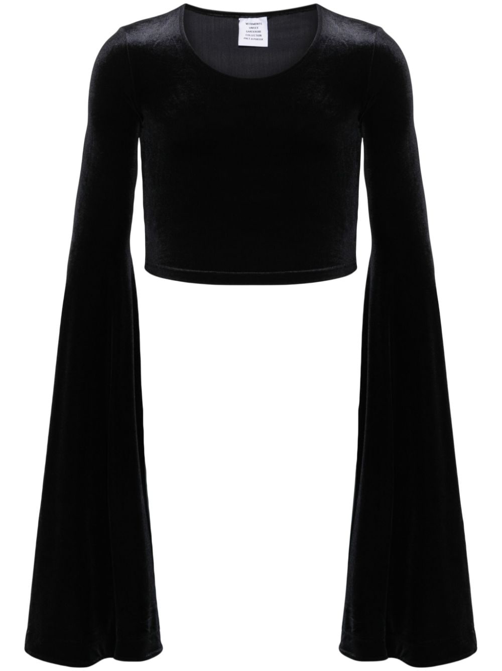 velour cropped top Highlights - Black - Velour - Stretch-design - Round neck - Extra-long sleeves - Flared cuffs - Internal logo tag - Cropped - Straight hem - When buying this unisex item, keep in mind that it is graded in standard men's sizing. Imported Composition Polyamide 85%, Elastane 15% SIZE & FIT Model measurements Height 5 ft 9 in(1.76 m) Bust/Chest 31.88 in(81 cm) Hips 35.43 in(90 cm) Waist 24.8 in(63 cm) FittingInformation This unisex piece is designed for a close fit whether you usually select women's or men's sizes Constructed with additional length on the sleeve Made from a midweight stretch fabric, this piece offers elasticity and flexibility when worn Washing instructions Hand Wash
