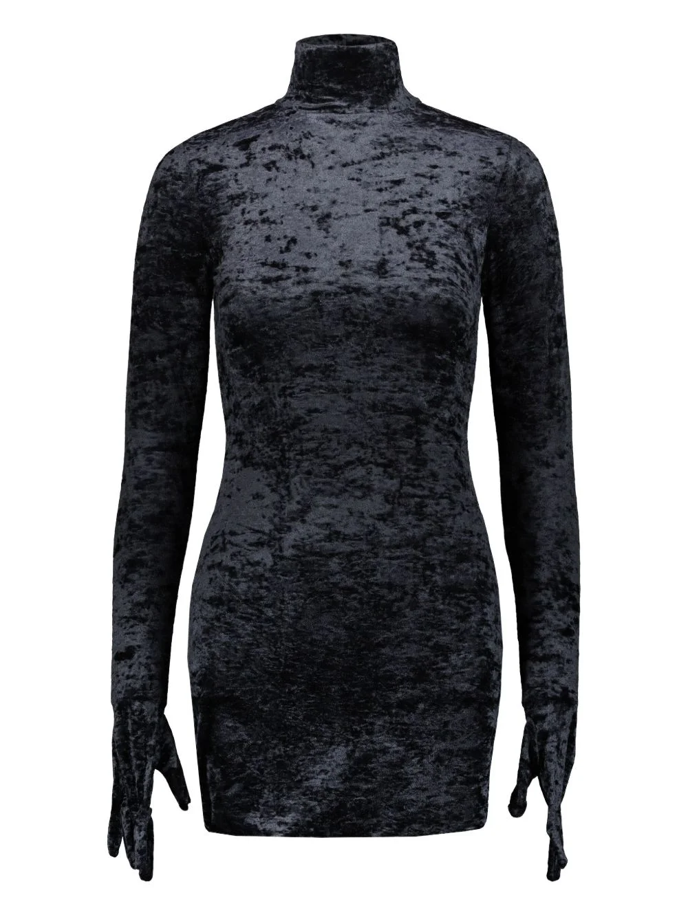 velvet gloves mini dress Highlights - Black - Velvet texture - High neck - Long sleeves - Logo motif - Gloves Made in Italy Composition Body: Polyamide 100% Washing instructions Read Manufacturer Guidelines