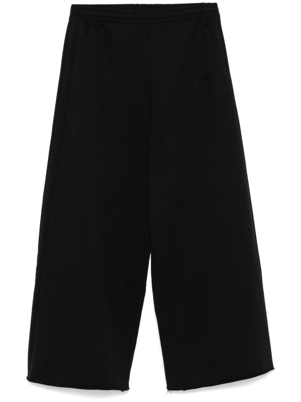 wide-leg track pants Highlights - Black - Cotton blend - Jersey texture - Wide leg - Elasticated waistband with internal drawstring - Two side slash pockets - Tonal embroidered logo at the leg - French terry lining - Raw-cut hem - Floor-length - When buying this unisex item, keep in mind that it is graded in standard men's sizing. Imported Composition Cotton 80%, Polyester 20% SIZE & FIT Model measurements Height 5 ft 10 in(1.77 m) Bust/Chest 33.07 in(84 cm) Hips 37 in(94 cm) Waist 24.8 in(63 cm) FittingInformation This piece is unisex and is designed with a wide-leg, whether you usually select women's or men's sizes The elasticated waist allows for a comfortable fit Made from a midweight non-stretch fabric, this piece offers minimal elasticity when worn Washing instructions Machine Wash