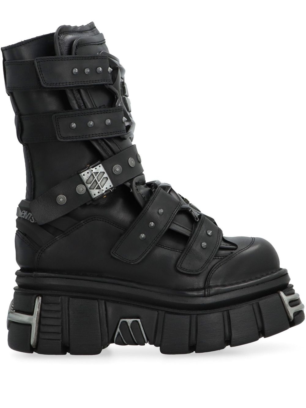 x New Rock Gamer boots Highlights - Black - Padded leather upper - Lace-up front - Metal detailing - Adjustable straps - Exaggerated platform sole Imported Composition Outer: Calf Leather 100% Sole: Rubber 100% Lining: Calf Leather 100% SIZE & FIT Measurement HEEL 2.75 in(7 cm)