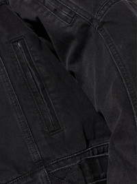 zipped denim jacket Highlights - Black - Panelled - Zip fastening - Long sleeves - Side pockets Imported Composition Cotton 100% Washing instructions Read Manufacturer Guidelines
