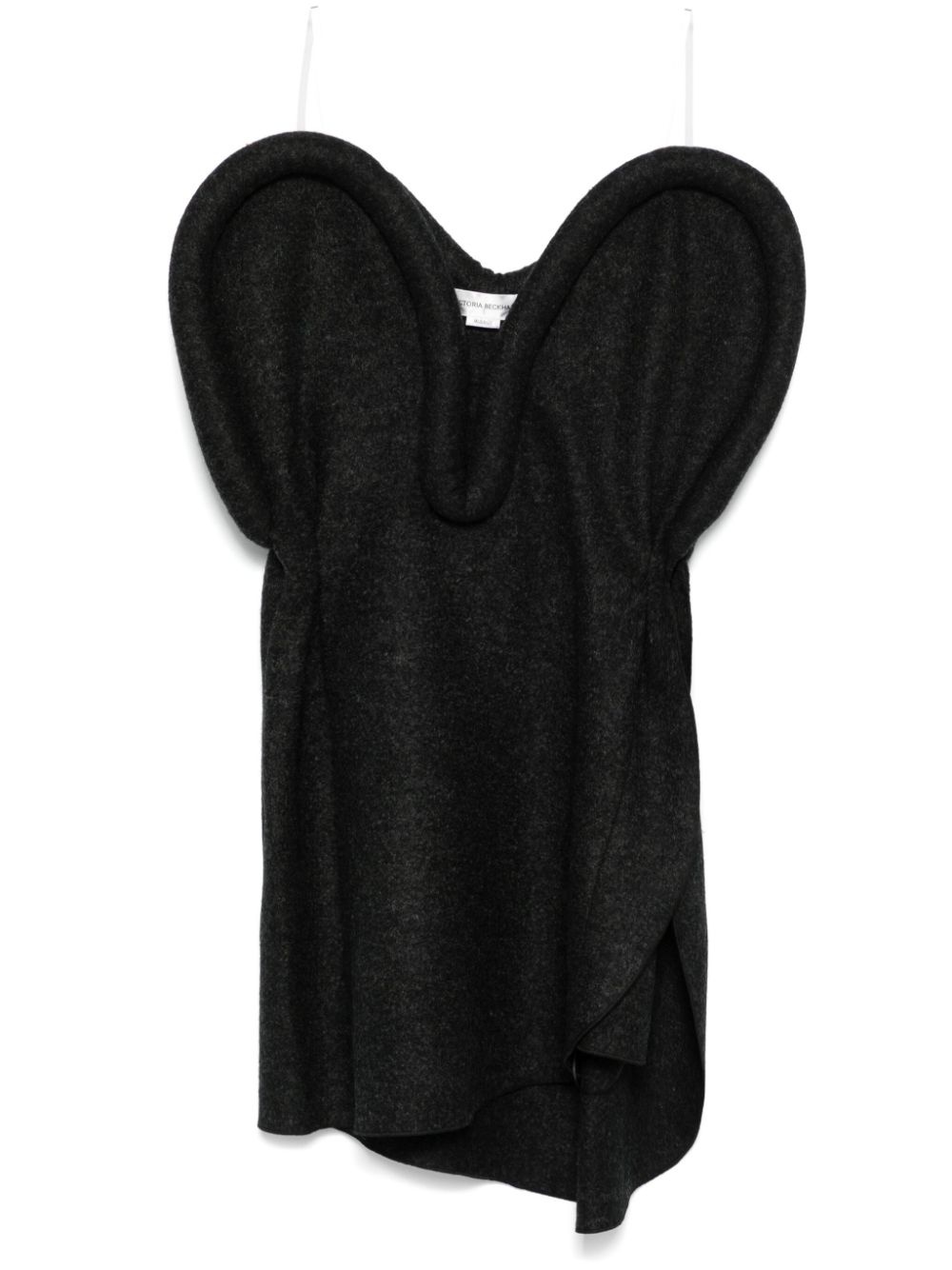 3D detail mini dress Highlights - Charcoal grey - Wool - Jersey fleece - Concealed side hook and zip fastening - Transparent straps - 3d detailing - V-neck - Sleeveless - Draped detailing - Asymmetric hem Made in United Kingdom Composition Lining: Polyurethane 100% Outer: Wool 100% SIZE & FIT Model measurements Height 5 ft 10 in(1.78 m) Bust/Chest 33.85 in(86 cm) Hips 36.61 in(93 cm) Waist 26.77 in(68 cm) FittingInformation Designed for a slim fit that sits just away from the body offering a close yet comfortable fit Made from a midweight non-stretch fabric, this piece offers minimal elasticity when worn