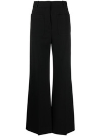 Alina flared tailored trousers Highlights - Black - Tailored cut - Flared - High-waisted - Concealed front button, hook and zip fastening - Belt loops - Two front patch pockets - Two rear patch pockets - Pressed crease Imported Composition Outer: Cotton 55%, Virgin Wool 45% Lining: Cotton 70%, Polyamide 30% SIZE & FIT Model measurements Height 5 ft 11 in(1.8 m) Bust/Chest 32.67 in(83 cm) Hips 36.22 in(92 cm) Waist 24.4 in(62 cm) Measurement FRONT RISE 11.41 in(29 cm) INSIDE LEG 33.46 in(85 cm) HIPS 37.79 in(96 cm) WAIST 29.13 in(74 cm) FittingInformation Designed with a flared hem, these trousers allow for a close fit at the waist with a slim fit over the leg and widening towards the hem Made from a midweight non-stretch fabric This piece fits true to size – those with curvy hips may wish to take one size up Washing instructions Dry Clean Only