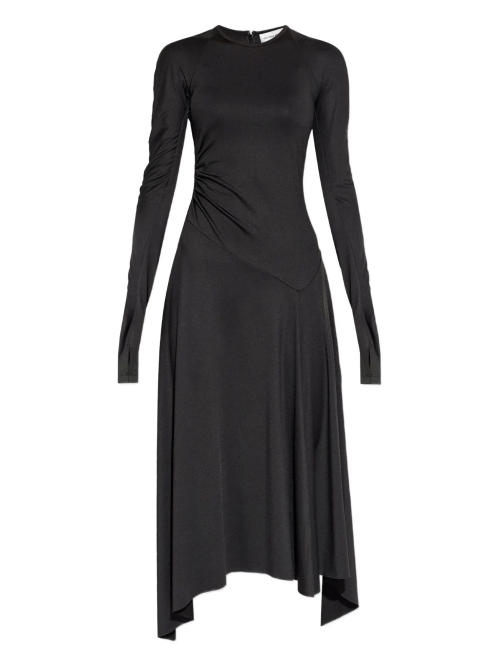 asymmetric-hem long-sleeved midi dress Highlights - Black - Asymmetric hem - Long sleeves - Thumb holes - Round neck Imported Composition Outer: Polyester 90% Spandex/Elastane 10% Washing instructions Read Manufacturer Guidelines