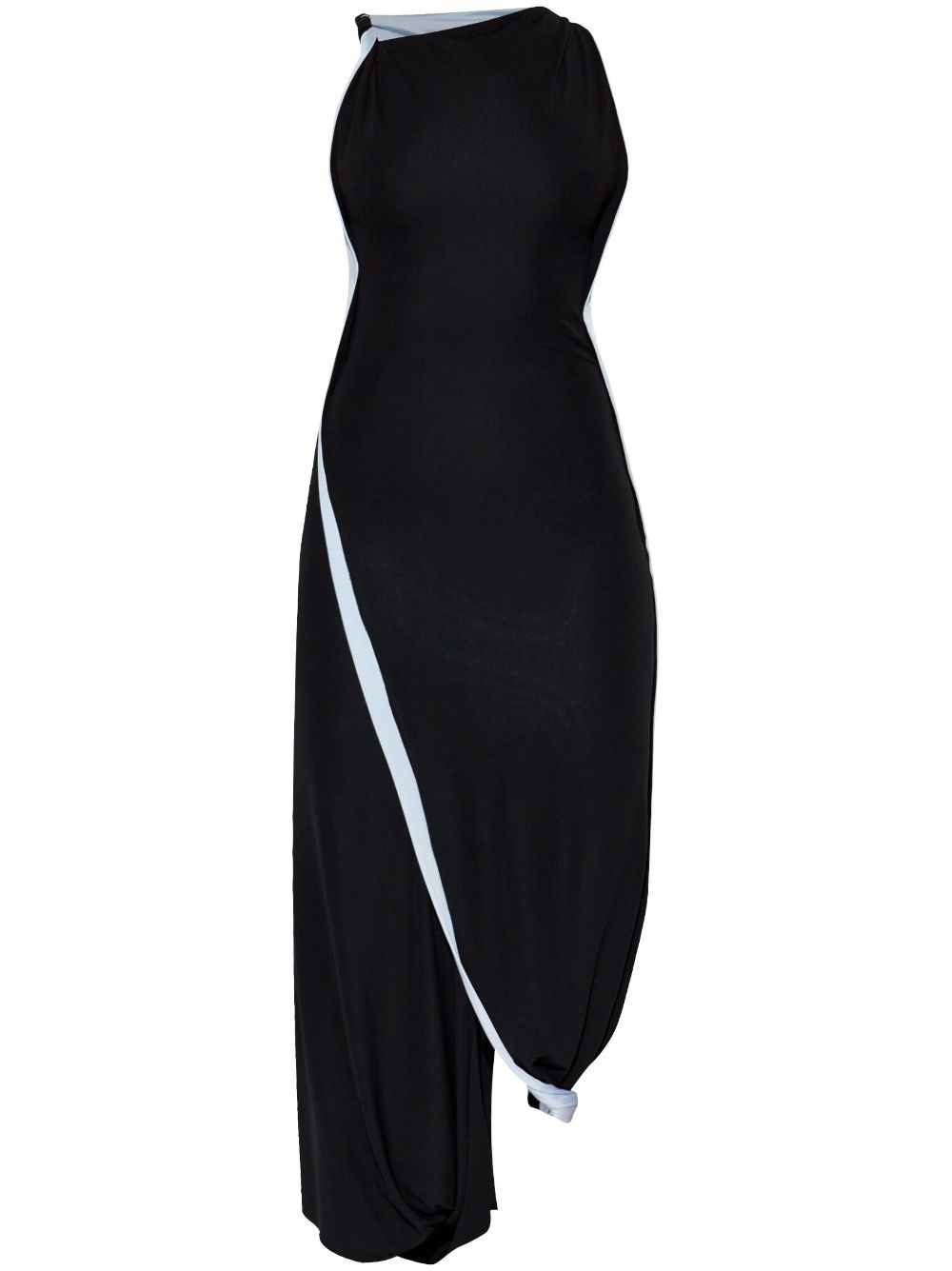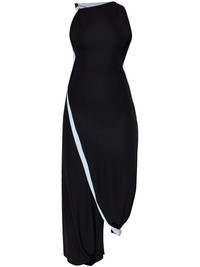 asymmetric maxi dress Highlights - Black/blue - Jersey texture - Colour-block design - Concealed side zip fastening - Asymmetric neck - Sleeveless - Twisted shoulder strap - Cut-out detailing - Partial lining - Asymmetric hem - Long length Imported Composition Viscose 100% SIZE & FIT Measurement HIPS 33.07 in(84 cm) LENGTH 48.42 in(123 cm) WAIST 24.4 in(62 cm) FittingInformation Designed for a slim fit that sits just away from the body offering a close yet comfortable fit Made from a midweight non-stretch fabric, this piece offers minimal elasticity when worn