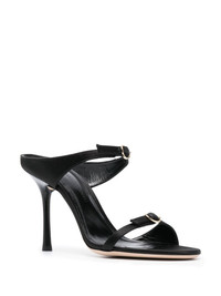 buckle-embellished 100mm leather heels Highlights - Jet black - Calf leather - Gold-tone hardware - Double-strap design - Double buckle fastening - Open toe - Almond toe - Slip-on style - High stiletto heel Made in Italy Composition Lining: Calf Leather 100%, Fabric 100% Outer: Fabric 100% Sole: Calf Leather 100% SIZE & FIT Measurement HEEL 3.93 in(10 cm)