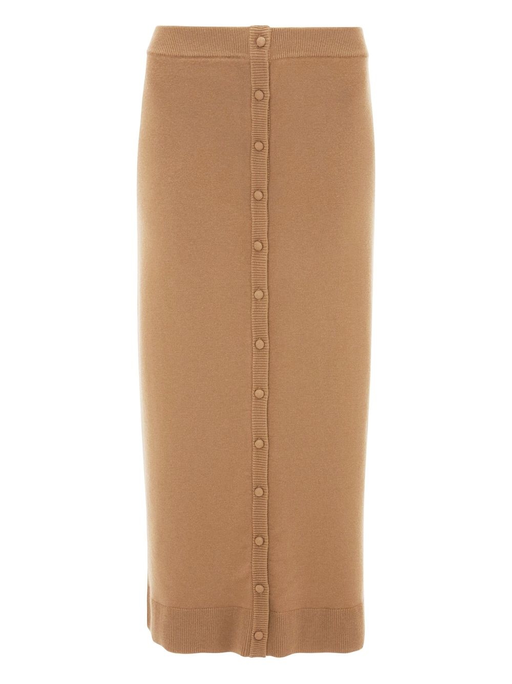 Button Detail midi skirt Highlights - Camel - Button fastening - Ribbed knit hemline - Ribbed stretch waistband Imported Composition Merino 82%, Nylon 16%, Elastane 2% Washing instructions Dry Clean Only