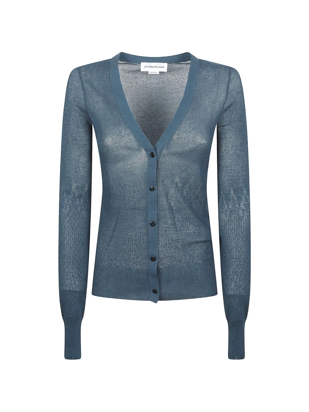 buttoned V-neck cotton cardigan Highlights - Blue - Cotton - Button fastening - Long sleeves - V-neck Imported Composition Cotton 85%, Nylon 15% Washing instructions Read Manufacturer Guidelines