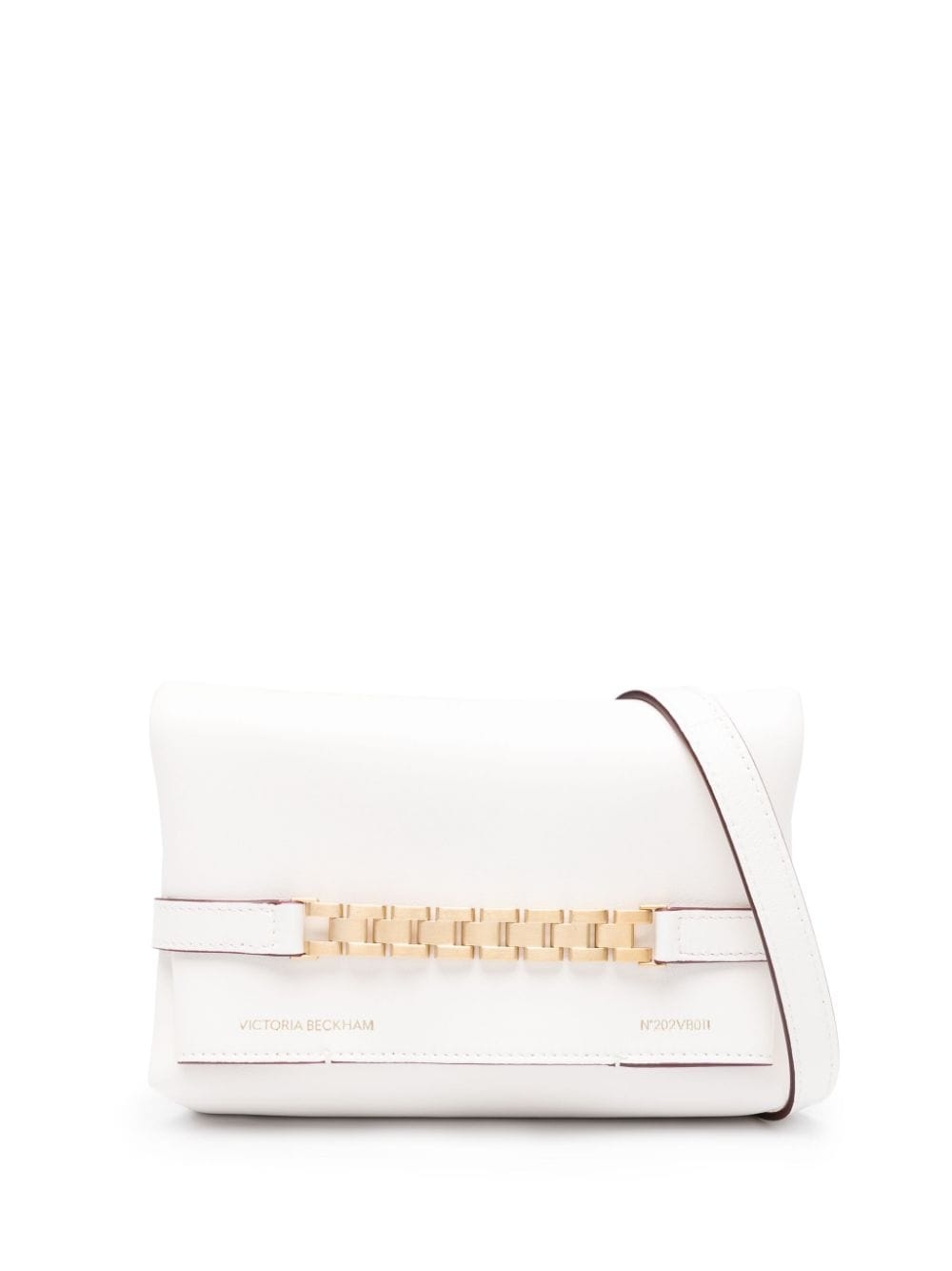 Chain-strap leather crossbody bag Highlights - Chalk white - Calf leather - Logo stamp to the front - Chain-link detailing - Tonal stitching - Gold-tone hardware - Foldover top - Adjustable shoulder strap - Internal logo patch - Main compartment Made in Italy Composition Outer: Lamb Skin 100% SIZE & FIT Model measurements Height 5 ft 10 in(1.78 m) Bust/Chest 33.07 in(84 cm) Hips 36.61 in(93 cm) Waist 24.8 in(63 cm) Measurement DEPTH 2.75 in(7 cm) HEIGHT 5.11 in(13 cm) STRAP 19.68 in(50 cm) WIDTH 7.08 in(18 cm)