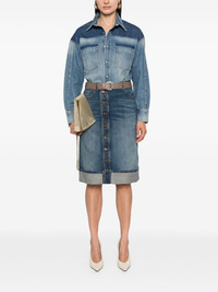 classic-collar denim shirt Highlights - Indigo blue - Cotton - Washed denim - Classic collar - Front press-stud fastening - Drop shoulder - Long sleeves - Press-stud fastening cuffs - Two chest patch pockets - Curved hem Made in Italy Composition Cotton 100% SIZE & FIT Model measurements Height 5 ft 11 in(1.8 m) Bust/Chest 33.07 in(84 cm) Hips 37.4 in(95 cm) Waist 25.19 in(64 cm) FittingInformation Designed to be unstructured, offering a loose fit throughout Sturdy and hard-wearing, this denim piece offers no stretch This piece fits true to size – take your usual size