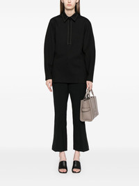 contrast-stitching flared trousers Highlights - Black - Cotton-wool blend - Contrast stitching - Mid-rise - Rear welt pocket - Concealed front fastening - Flared - Cropped leg Imported Composition Outer: Polyester 45%, Virgin Wool 36%, Polyamide 16%, Elastane 3% Lining: Cotton 70%, Polyamide 30% SIZE & FIT Model measurements Height 5 ft 10 in(1.77 m) Bust/Chest 30.7 in(78 cm) Hips 35.03 in(89 cm) Waist 23.62 in(60 cm) FittingInformation Designed with a flared hem, these trousers allow for a close fit at the waist with a slim fit over the leg and widening towards the hem Cropped in length Made from a midweight stretch fabric, this piece offers elasticity and flexibility when worn This piece fits true to size – take your usual size