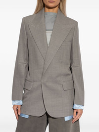contrasting-border wool blazer Highlights - Nickel grey - Wool - Wide peak lapels - Off-centre front fastening - Shoulder pads - Long sleeves - Split cuffs - Straight hem - Contrasting border - Chest welt pocket - Two front flap pockets - Satin lining Made in Italy Composition Wool 100% Washing instructions Read Manufacturer Guidelines