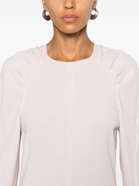 crepe midi dress Highlights - Light pink - Crepe texture - Concealed rear zip fastening - Round neck - Pleat detailing - Long sleeves - Straight hem - Mid-length Imported Composition Viscose 60%, Virgin Wool 40% SIZE & FIT Model measurements Height 5 ft 10 in(1.78 m) Bust/Chest 33.07 in(84 cm) Hips 36.61 in(93 cm) Waist 24.8 in(63 cm) FittingInformation Designed for a slim fit that sits just away from the body offering a close yet comfortable fit Made from a midweight non-stretch fabric