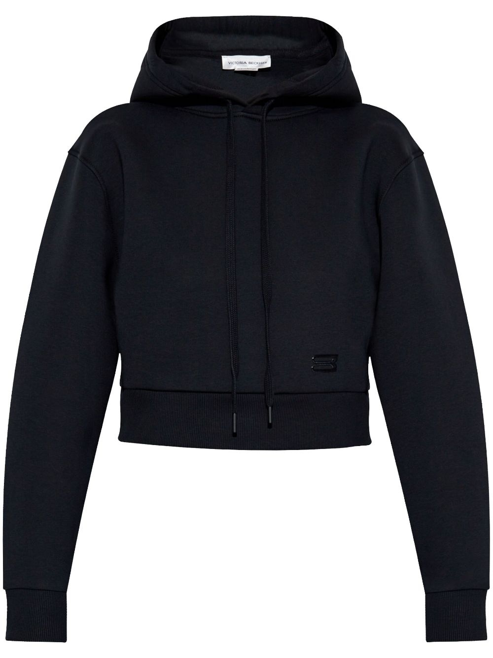 cropped hoodie Highlights - Black - Cotton blend - Soft scuba jersey - Cropped - Drawstring hood - Long sleeves - Ribbed cuffs and hem - Rubberised logo detail to the front Imported Composition Cotton 75%, Polyurethane 25%