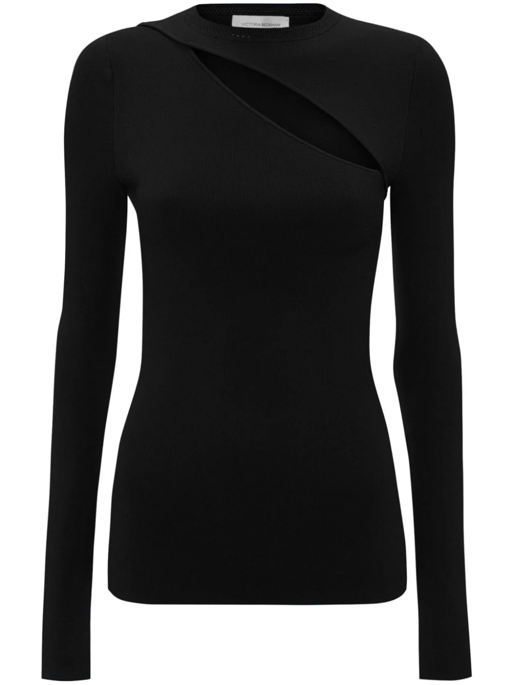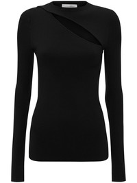 cut-out ribbed-knit top Highlights - Black - Stretch-design - Ribbed knit - Cut-out detailing - Round neck - Long sleeves - Straight hem Made in Italy Composition Viscose 66%, Elastane 21%, Polyester 13% Washing instructions Read Manufacturer Guidelines