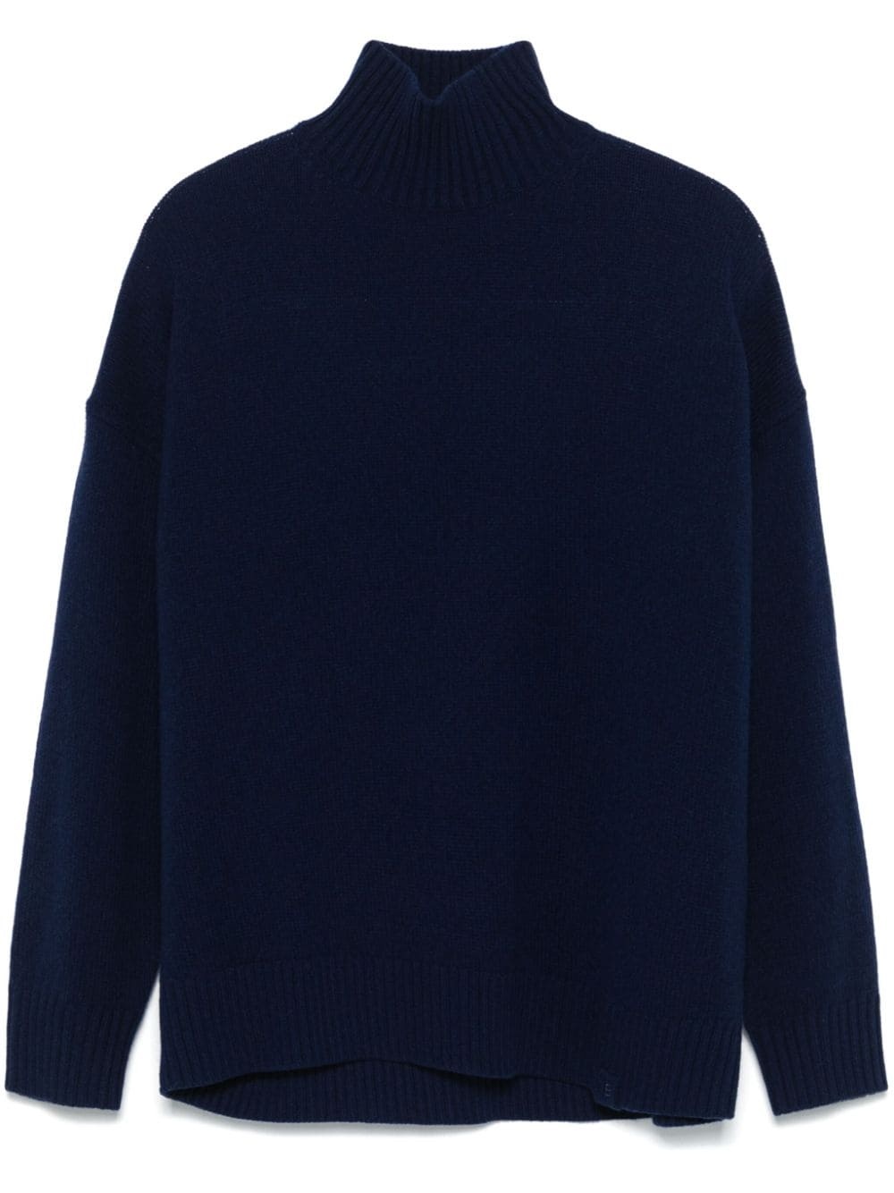 cut-out sweater Highlights - Imperial blue - Wool-cashmere blend - Knitted construction - Cut-out detailing to the back - Ribbed high neck - Drop shoulder - Long sleeves - Ribbed cuffs and hem Imported Composition Wool 87%, Cashmere 13% SIZE & FIT FittingInformation Designed to be unstructured, offering a loose fit throughout Made with a midweight knit, this piece offers some stretch