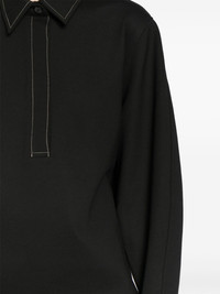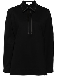 decorative-stitching polo top Highlights - Black - Contrast stitching - Stretch-design - Classic collar - Front button placket - Drop shoulder - Long sleeves - High-low hem Imported Composition Viscose 67%, Polyester 28%, Elastane 5% SIZE & FIT Model measurements Height 5 ft 10 in(1.77 m) Bust/Chest 30.7 in(78 cm) Hips 35.03 in(89 cm) Waist 23.62 in(60 cm) FittingInformation Designed for a relaxed fit, this piece allows for comfort and movement when worn The adjustable tie waist gives a more adaptable and personalised fit Made from a midweight stretch fabric, this piece offers elasticity and flexibility when worn This piece fits true to size – take your usual size