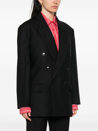 double-breasted blazer Highlights - Black - Double-breasted button fastening - Peak lapels - Long sleeves - Straight hem Imported Composition Outer: Polyester 53%, Virgin Wool 43%, Elastane 4% Lining: Viscose 100%, Cotton 70%, Polyamide 30% SIZE & FIT Model measurements Height 5 ft 9 in(1.75 m) Bust/Chest 32.67 in(83 cm) Hips 36.22 in(92 cm) Waist 24.8 in(63 cm) FittingInformation Designed to be unstructured, offering a loose fit throughout The internal shoulder pads offer a structured shape Made from a midweight fabric Washing instructions Dry Clean Only
