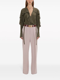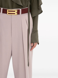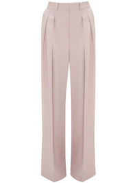 double-pleat wide-leg trousers Highlights - Rose quartz pink - Felted finish - Belt loops - Pleat detailing - Concealed front fastening - Wide leg - Two side slit pockets - Two rear jetted pockets Imported Composition Polyester 55%, Wool 45% SIZE & FIT Measurement FRONT RISE 12.99 in(33 cm) INSIDE LEG 31.1 in(79 cm) HIPS 38.58 in(98 cm) WAIST 29.52 in(75 cm) Washing instructions Dry Clean Only