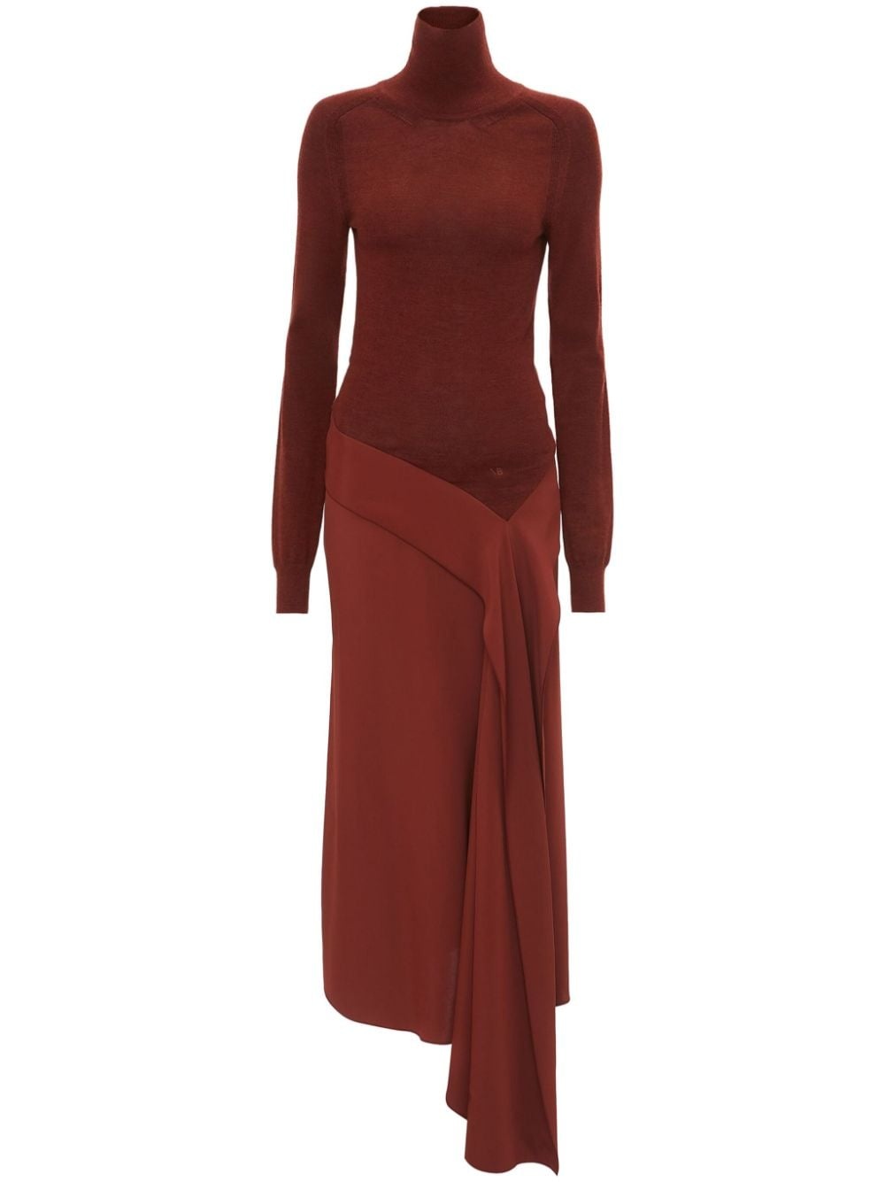 draped-detail high-neck maxi dress Highlights - Dark red - Wool - Fine knit - Crepe texture - Panelled design - High neck - Draped detailing - Long sleeves - Ribbed cuffs - Fitted waistline - Gathered detailing - High-low hem - Long length Imported Composition Wool 100% SIZE & FIT Measurement HIPS 33.85 in(86 cm) LENGTH 49.6 in(126 cm) WAIST 30.7 in(78 cm)