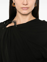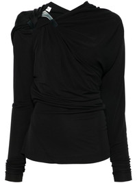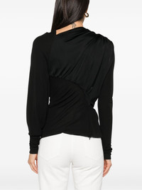 draped long-sleeve top Highlights - Black - Stretch-design - Draped detailing - Long sleeves - Asymmetric neck - Square resin detailing - Asymmetric hem Imported Composition Viscose 100%, Epoxy Resin 100% SIZE & FIT Model measurements Height 5 ft 11 in(1.8 m) Bust/Chest 33.07 in(84 cm) Hips 37.4 in(95 cm) Waist 25.19 in(64 cm) FittingInformation Designed for a slim fit that sits just away from the body offering a close yet comfortable fit Made from a midweight non-stretch fabric Washing instructions Dry Clean Only