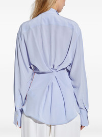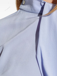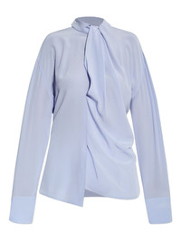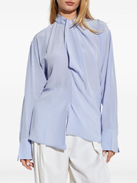 draped silk blouse Highlights - Light blue - High neck - Draped design - Asymmetric hem - Long sleeves - Button cuffs Imported Composition Silk 100% SIZE & FIT FittingInformation Designed for a slim fit that sits just away from the body offering a close yet comfortable fit Made from a lightweight non-stretch fabric Washing instructions Read Manufacturer Guidelines