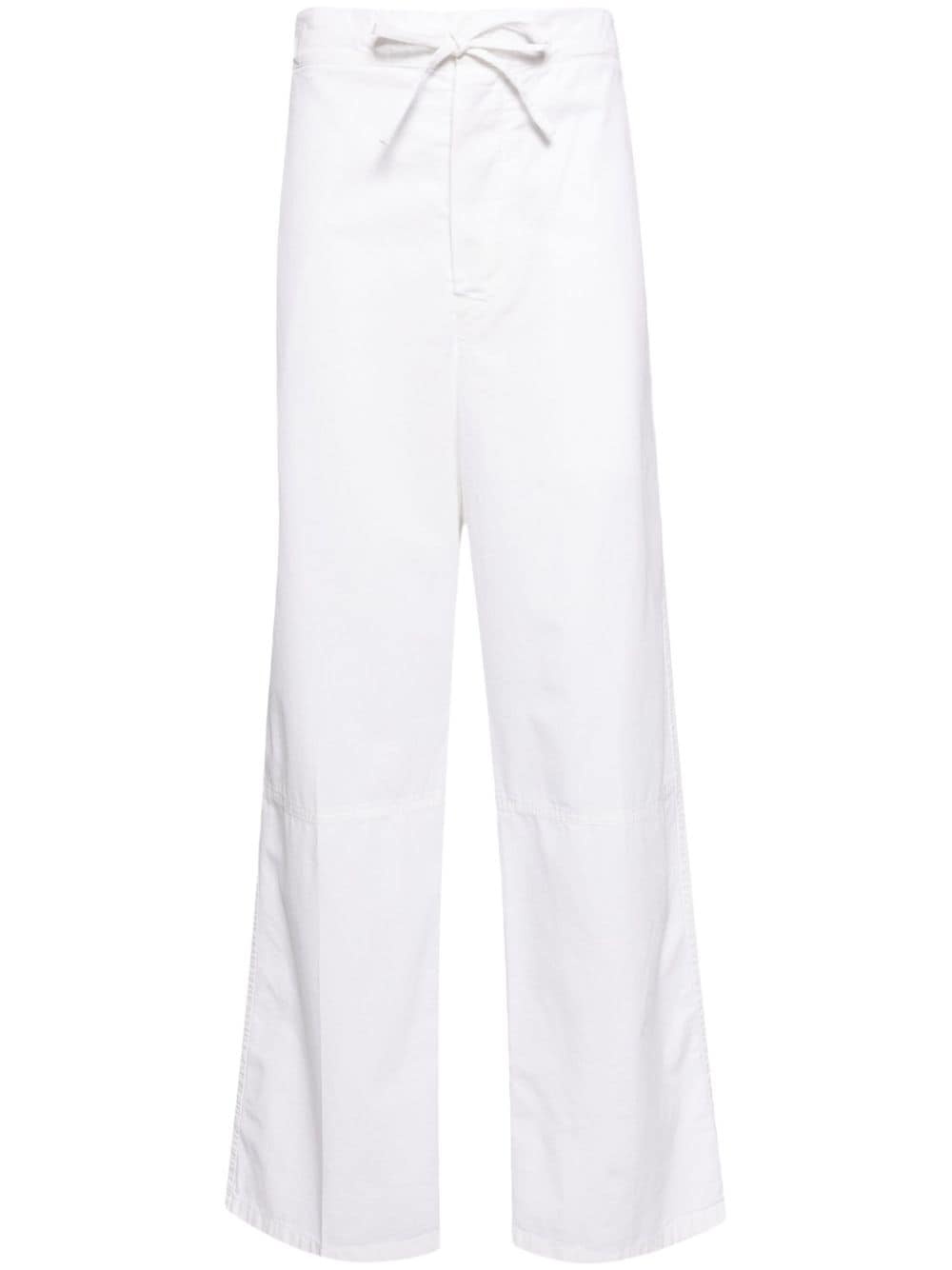 drawstring-waist cotton trousers Highlights - White - Cotton - High-waisted - Drawstring waist - Straight leg - Slight flare - Two side slit pockets - Rear flap pocket Made in Italy Composition Cotton 100%
