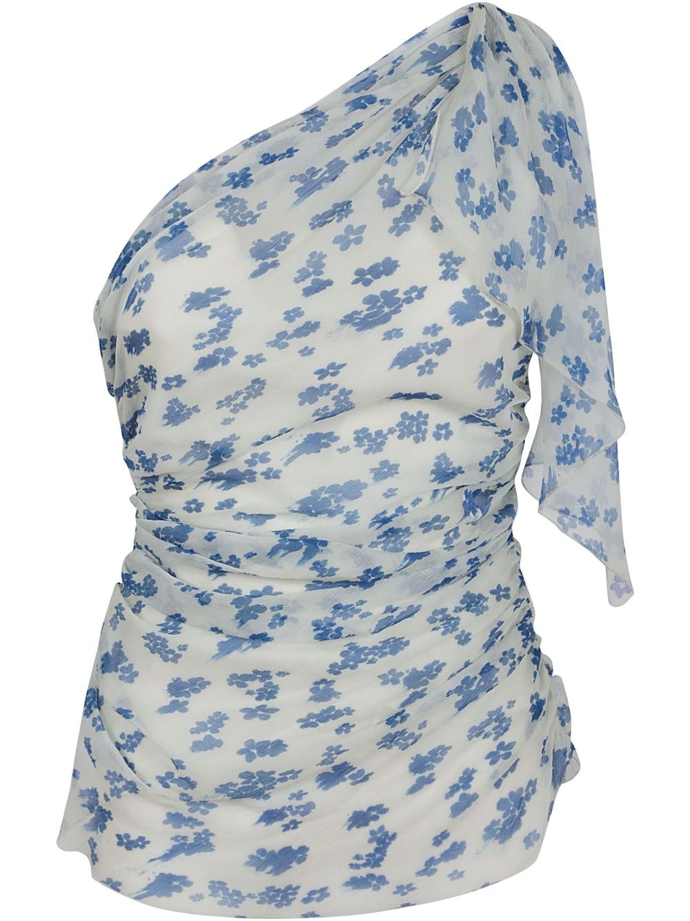 floral-print one-shoulder top Highlights - White - Floral print - Ruched detailing - Draped sleeve - Asymmetric neckline - Fitted silhouette Imported Composition Silk 100%