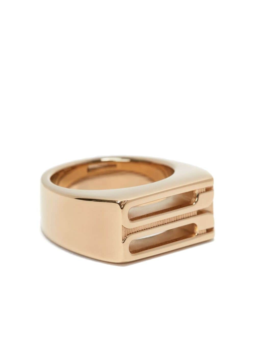 Frame signet ring Highlights - Gold-tone - Gold-plated brass - Signet band - Engraved logo Made in Italy