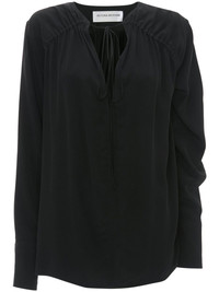 gathered-detail blouse Highlights - Black - Front tie fastening - Buttoned cuffs - V-neck Imported Composition Silk 100% SIZE & FIT FittingInformation Designed to be unstructured, offering a loose fit throughout The adjustable drawstring means that you can adjust this piece’s fit to suit your comfort and preference Made from a lightweight non-stretch fabric