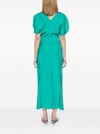 gathered-detail midi dress Highlights - Green - Gathered detailing - Concealed rear hook and zip fastening - Crew neck - Split short sleeves - Pleat detailing - V-back - Flared skirt - Unlined - Straight hem - Mid-length Imported Composition Viscose 100% SIZE & FIT Model measurements Height 5 ft 9 in(1.75 m) Bust/Chest 31.88 in(81 cm) Hips 34.64 in(88 cm) Waist 24.01 in(61 cm) FittingInformation Designed for a loose fit at the chest with a close fit over the waist and hips Made from a midweight non-stretch fabric