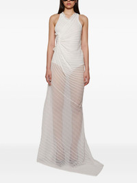 gathered sleeveless dress Highlights - White - Gathered detail - Sleeveless design - Pleated design - Asymmetrical hem - Side slit Imported Composition Cotton 84%, Polyamide 16% Washing instructions Read Manufacturer Guidelines