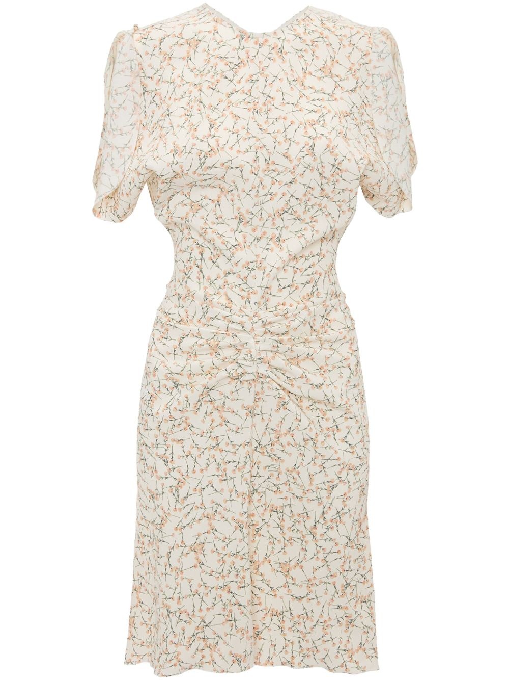 gathered-waist mini dress Highlights - Ecru - Concealed rear zip fastening - Crew neck - Short sleeves - Straight hem Imported Composition Viscose 100%