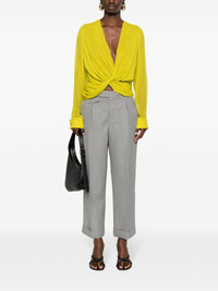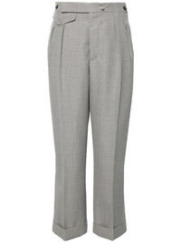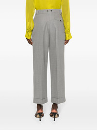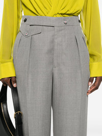 high-waist tailored trousers Highlights - Grey - Virgin wool - Interlock twill weave - Decorative button detailing - Pleat detailing - Pressed crease - High waist - Belt loops - Concealed front fastening - Two side slit pockets - Rear flap pocket - Tailored cut - Wide leg - Turn-up hem Imported Composition Outer: Virgin Wool 100% Lining: Cotton 70%, Polyamide 30% SIZE & FIT Model measurements Height 5 ft 10 in(1.77 m) Bust/Chest 32.28 in(82 cm) Hips 35.03 in(89 cm) Waist 25.19 in(64 cm) FittingInformation Designed for a straight-leg fit, these trousers allow for a close fit at the waist and an unrestricted, comfortable fit over the leg Made from a midweight non-stretch fabric This piece fits true to size – take your usual size