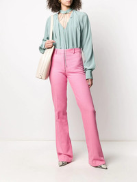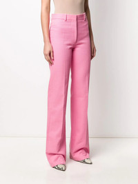 high-waisted tailored trousers Highlights - Rose pink cotton high-waisted slim leg trousers from victoria beckham featuring a button and zip fly, a waistband with belt loops, a back pocket, a ribbed design and a long length. Made in Italy Composition Cotton 100% SIZE & FIT Model measurements Height 5 ft 10 in(1.79 m) Bust/Chest 31.88 in(81 cm) Hips 35.43 in(90 cm) Waist 23.62 in(60 cm) Washing instructions Dry Clean Only