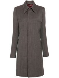jacquard single-breasted coat Highlights - Cedar brown/multicolour - Virgin wool - Patterned jacquard - Straight-point collar - Throat latch - Concealed front button fastening - Shoulder pads - Long sleeves - Four front slip pockets - Central rear vent - Straight hem - Thigh-length - Satin lining Imported Composition Lining: Viscose 100%, Cotton 70%, Polyamide 30% Outer: Virgin Wool 100% SIZE & FIT Model measurements Height 5 ft 9 in(1.74 m) Bust/Chest 34.64 in(88 cm) Hips 36.61 in(93 cm) Waist 26.37 in(67 cm) FittingInformation Designed to be unstructured, offering a loose fit throughout The internal shoulder pads offer a structured shape Made from a midweight non-stretch fabric This piece fits true to size – take your usual size