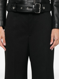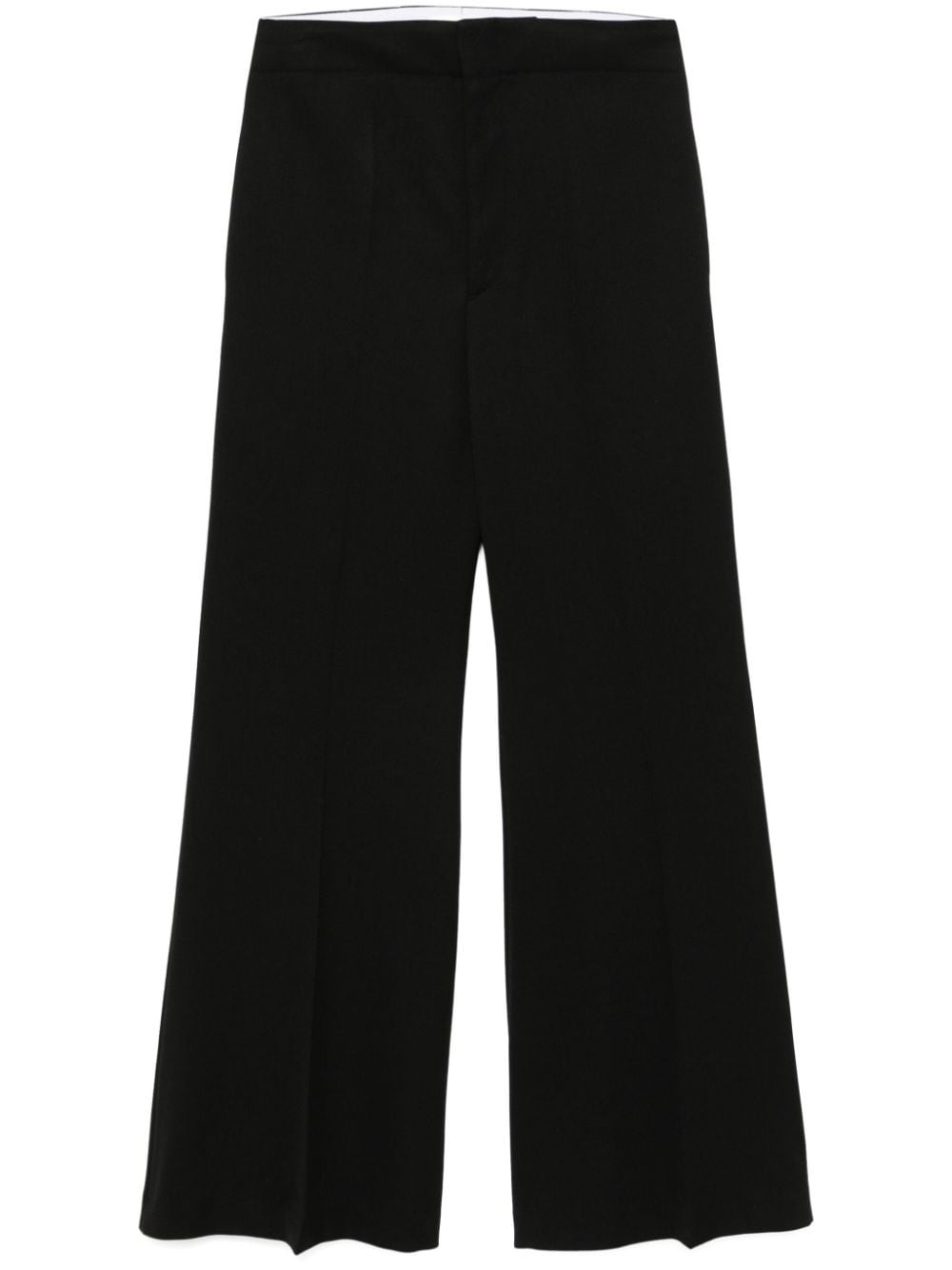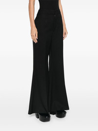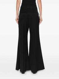 Kick trousers Highlights - Black - Pique weave - Concealed front button, hook and zip fastening - Low-rise - Pressed crease - Two side slit pockets - Two rear welt pockets - Straight hem - Long length - Flared wide leg Imported Composition Outer: Polyester 55%, Virgin Wool 45% Lining: Cotton 70%, Polyamide 30% SIZE & FIT Model measurements Height 5 ft 10 in(1.78 m) Bust/Chest 33.46 in(85 cm) Hips 36.22 in(92 cm) Waist 23.22 in(59 cm) FittingInformation Designed with a wide-leg cut, these trousers allow for a close fit at the waist and offer a loose and roomy fit over the leg Made from a midweight stretch fabric, this piece offers elasticity and flexibility when worn