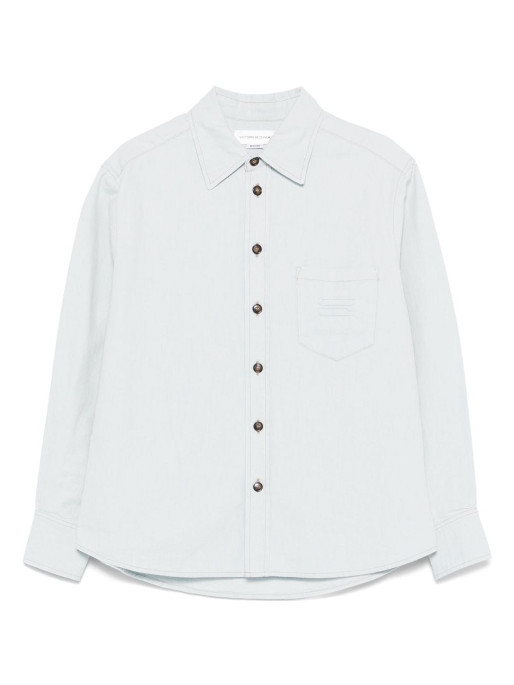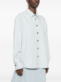 logo-embossed shirt Highlights - Light blue - Front button placket - Buttoned cuffs - Chest patch pocket - Rear keeper loop Made in Italy Composition Cotton 100% SIZE & FIT Model measurements Height 5 ft 10 in(1.77 m) Bust/Chest 32.28 in(82 cm) Hips 35.03 in(89 cm) Waist 25.19 in(64 cm) FittingInformation Designed to be unstructured, offering a loose fit throughout Sturdy and hard-wearing, this denim piece offers no stretch