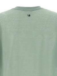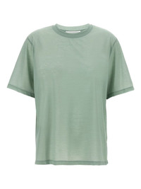 logo-embroidered T-shirt Highlights - Sage green - Crew neck - Short sleeves - Semi-sheer construction Imported Composition Cotton 70%, Polyamide 30%