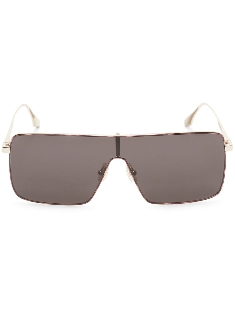 logo-engraved shield-frame sunglasses Highlights - Gold-tone - Metal - Polished finish - Shield frame - Grey tinted lenses - Uv-protective lenses - Logo-engraved arm - Straight arms - Curved tips - These glasses come with a protective case. Made in Italy Composition Acetate 100%, Metal 100%