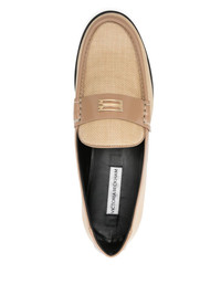 Leather-trimmed raffia loafers Beige